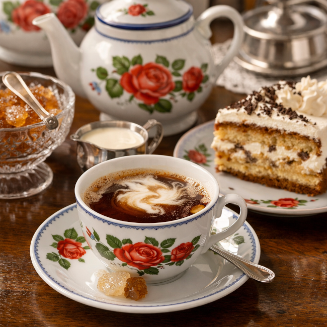 Tijdens de ceremonie serveren wij een authentieke Oost-Friese theemelange, bekend om zijn krachtige en volle smaak. De thee wordt geschonken in mooi porselein met de bekende Friese roos, wat de ervaring een extra authentiek en sfeervol karakter geeft.